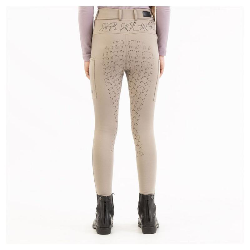 Legginsy młodzieżowe zimowe Jim firmy BR. Ciepłe legginsy rozciągliwe w 4 kierunkach. Wyposażone w wyskoki stan, kieszeń na telefon na każdej nogawce. Ozdobione srebrnym logo w lewej przedniej części i srebrnym nadrukiem w kształcie konia na tyle.