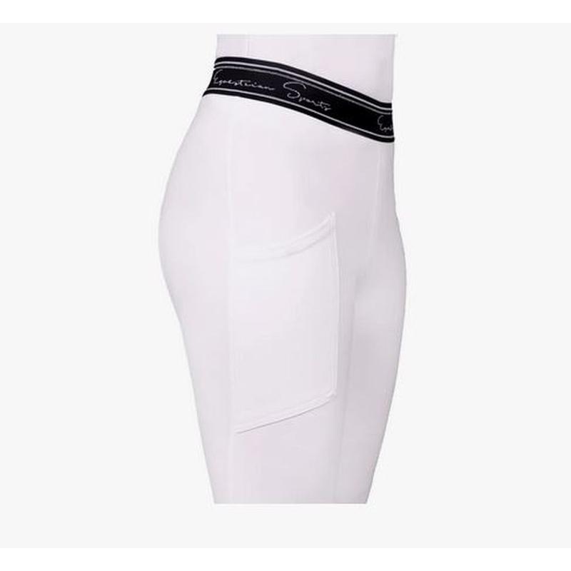 Klasyczne legginsy jeździeckie wykonane z miękkiego, gładkiego materiału. Legginsy z szerokim paskiem w pasie i pełnym silikonowym lejem. Posiadają elastyczny, syntetyczny i oddychający materiał oraz kieszeń na telefon komórkowy.