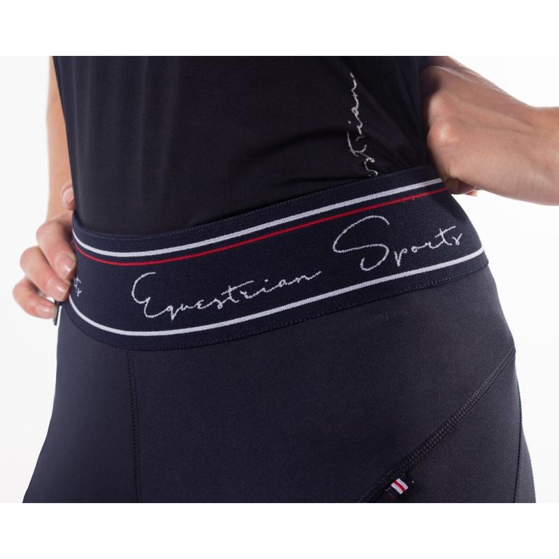 Legginsy firmy QHP wykonane z miękkiej elastycznej tkaniny. Posiadają kieszenie siateczkowe na bocznych udach. Posiadają nadruk na nogawce.