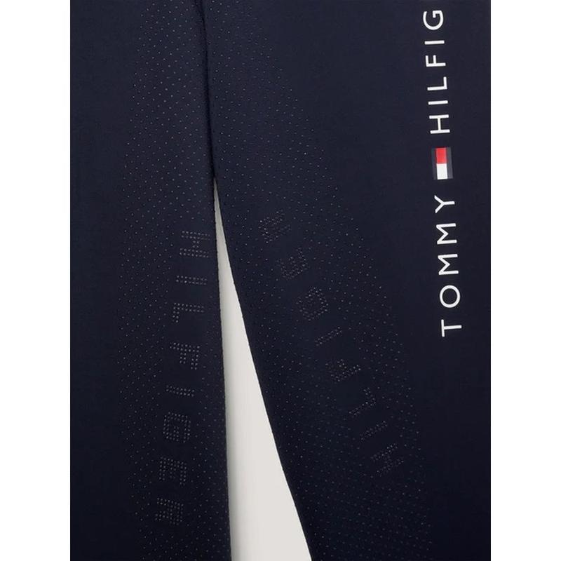 Techniczne legginsy jeździeckie Elmira. Legginsy te mają klasyczne, charakterystyczne udo z logo Tommy Hilfiger i są wyposażone w silikonowy uchwyt oraz poręczną kieszeń na telefon komórkowy na lewym udzie. Logo Tommy Hilfiger wewnątrz paska i na dole.