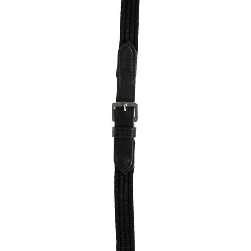 Lonża podwójna z firmy HKM. Zakończona dwoma karabińczykami oraz na środku zapinane na klamrę.