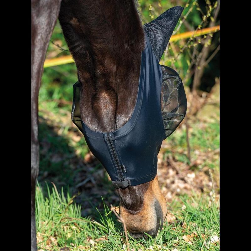 Maska siatkowa Zebra firmy Horze. Maska przeciw owadom chroniąca również nos konia oraz uszy. Chroni przed promieniowaniem UV (UPF 50+).