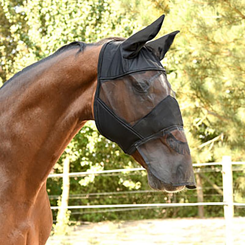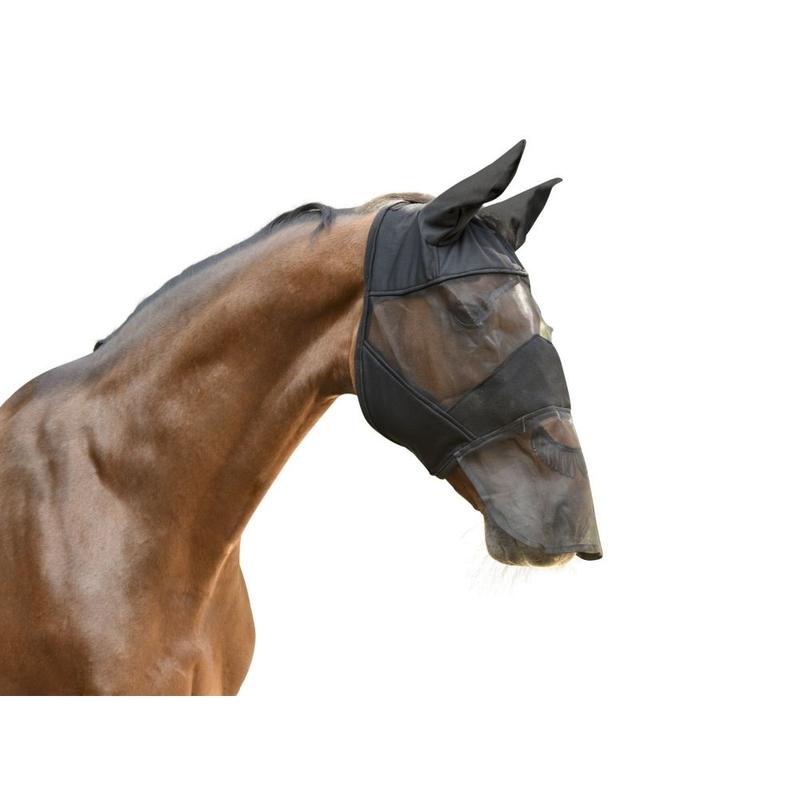 Maska siatkowa firmy QHP. Maska przeciw owadom chroniąca również nos konia oraz uszy.