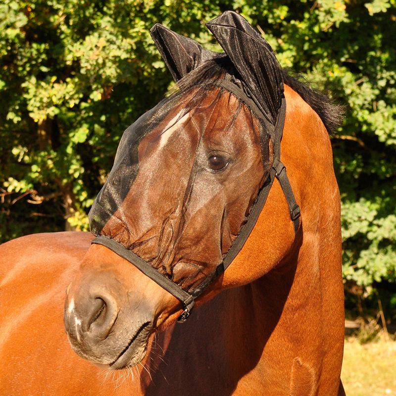 Maska przeciw owadom firmy Ekkia. Wykonana z wytrzymałej tkaniny poliestrowej. Doskonale chroni pysk, uszy oraz oczy konia. Stosowana podczas jazdy oraz na padok. Posiada nausznikami z elastycznego materiału.Ochrona przed promieniowaniem UV.