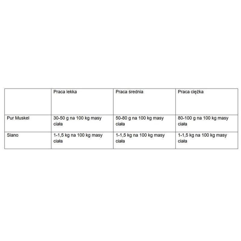 PUR.MUSKEL dedykowany jest szczególnie koniom wrażliwym metabolicznie, które mogą skorzystać z optymalnej zawartości niezbędnych aminokwasów wspomagających metabolizm mięśni.