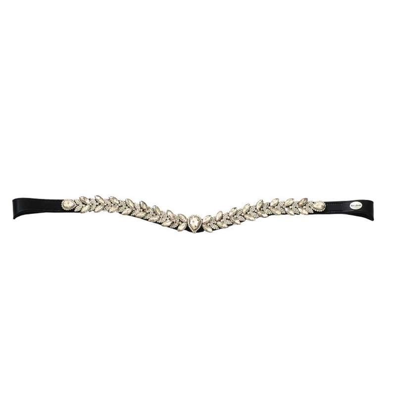 Naczółek Exquisite firmy Kavalkade o lekko opadającym kształcie. Zapinany na guzik. Zdobiony kryształkami w różnych rozmiarach.
