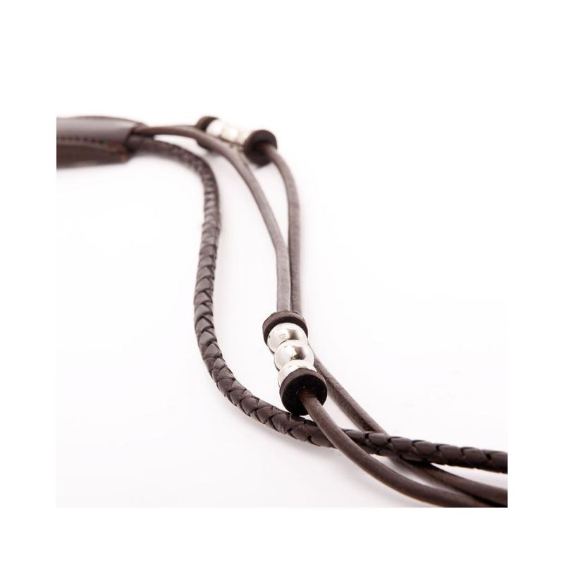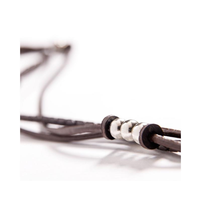 Naczółek Joy firmy Kavalkade o wyglądzie bransoletki składa się z 3 skórzanych sznurków ozdobionych srebrnymi koralikami.