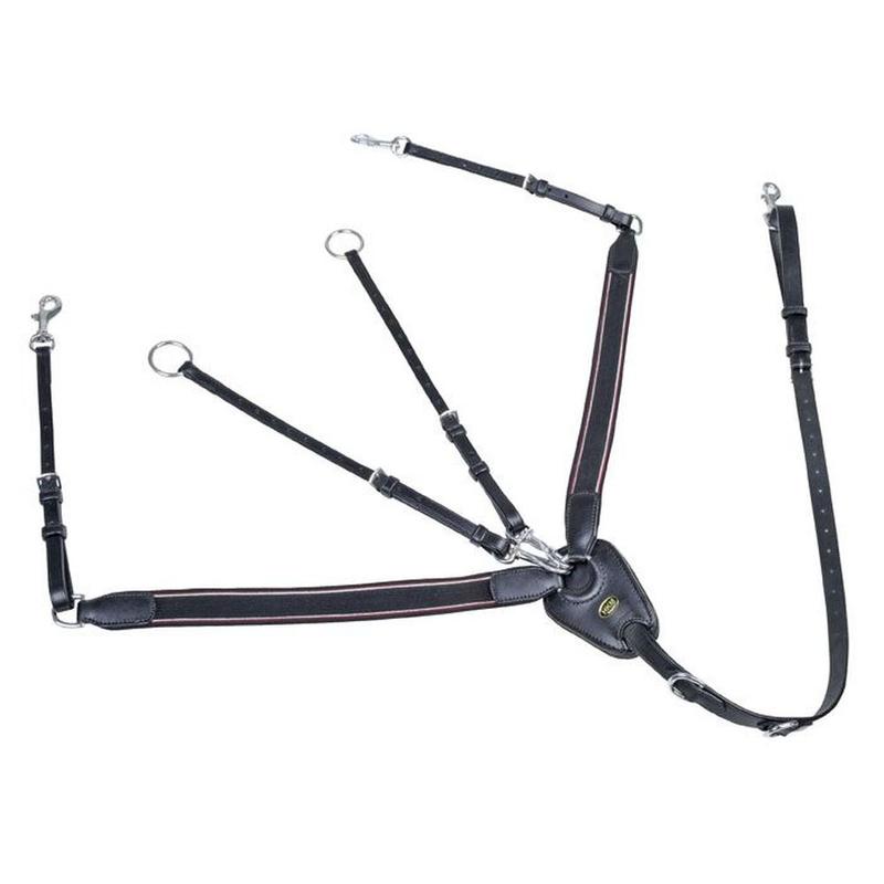 Napierśnik z wytokiem firmy HKM. Napierśnik wykonany z szerokiej gumy, podszyty miękkim materiałem w miejscach narażonych na ucisk. Posiada możliwość wypinania wytoku oraz regulacji rozmiaru. Wykonany z wysokiej jakości skóry. Wyposażony w elastyczne wst