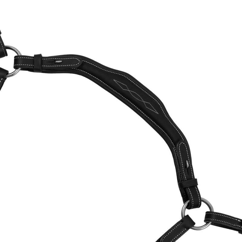 Wysokiej jakości skórzany napierśnik zapobiega przesuwaniu się siodła do tyłu za pomocą stalowych karabińczyków mocowanych bezpośrednio do przedniego łęku siodła. Wyposażony w wytok , zapobiega unoszeniu się głowy konia w górę, działając bezpośrednio na wędzidło za pomocą wodzy przechodzącej przez pętlę na końcu wędzidła. Wodze należy używać ze stoperami, w przeciwnym razie wytok może się zsunąć do przodu i zaplątać w kółko wędzidła, blokując głowę konia i grożąc upadkiem. Różnorodne sprzączki z licznymi otworami i haczykami sprawiają, że zapięcie i regulacja są idealne dla każdego konia.