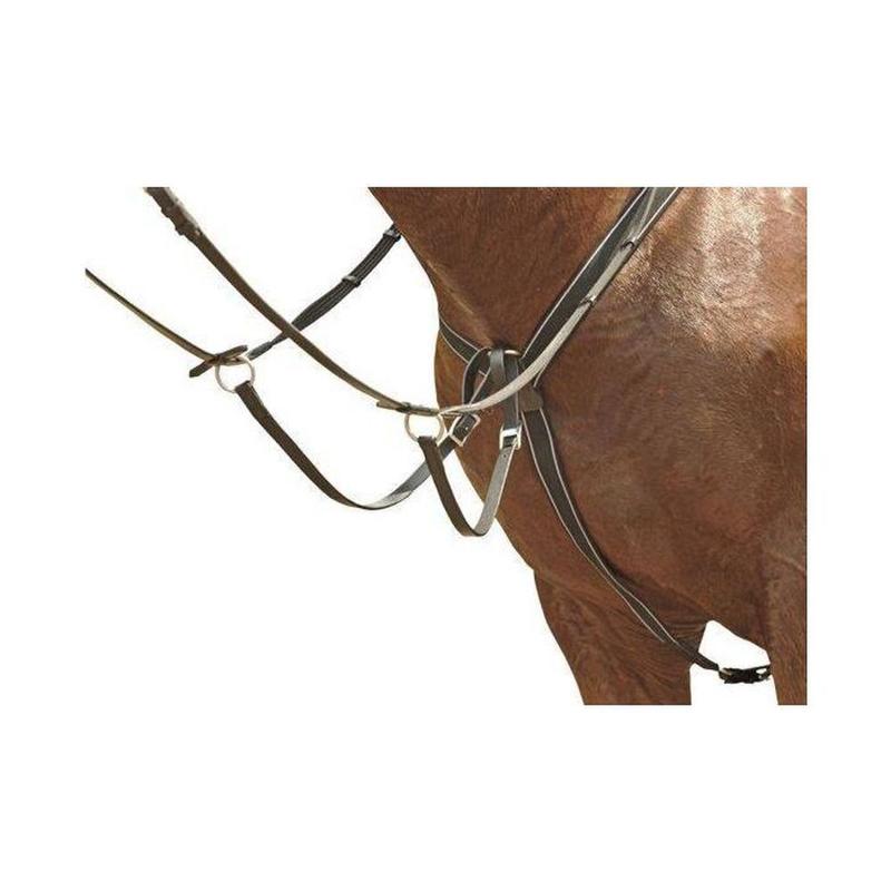 Napierśnik z wytokiem firmy HKM. Wykonany z elastycznych taśm i wysokiej jakości skóry. Posiada możliwość wypinania wytoku oraz regulacji rozmiaru. Regulowany w dwóch miejscach. Posiada sprzączki chromowane.