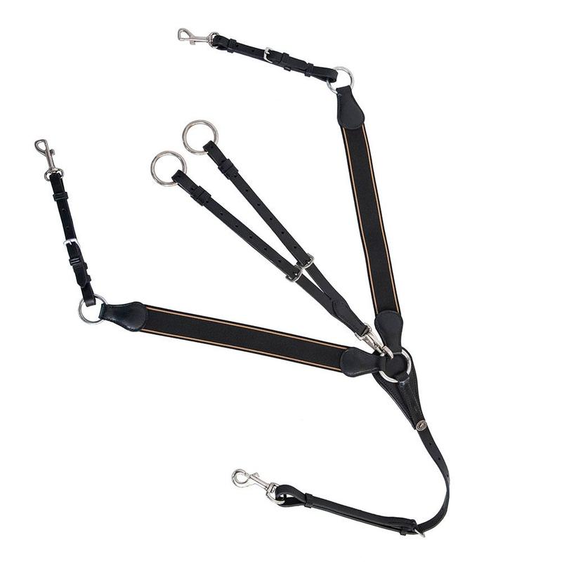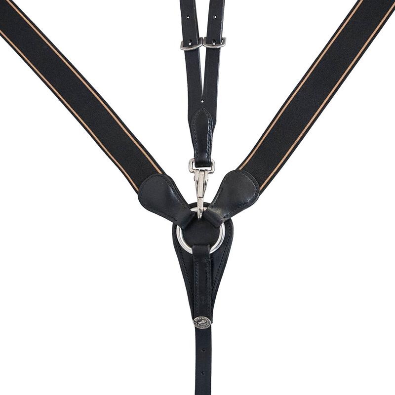 Napierśnik 3- punktowy z szerokimi gumami firmy Parkur. Wykonany z wysokiej jakości skóry bydlęcej. Podszyty bukatem. Produkt polski.
