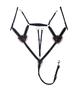 Napierśnik z wytokiem firmy HKM. Napierśnik wykonany z szerokiej gumy, podszyty miękkim materiałem w miejscach narażonych na ucisk. Posiada możliwość wypinania wytoku oraz regulacji rozmiaru. Wykonany z wysokiej jakości skóry. Wyposażony w elastyczne wst