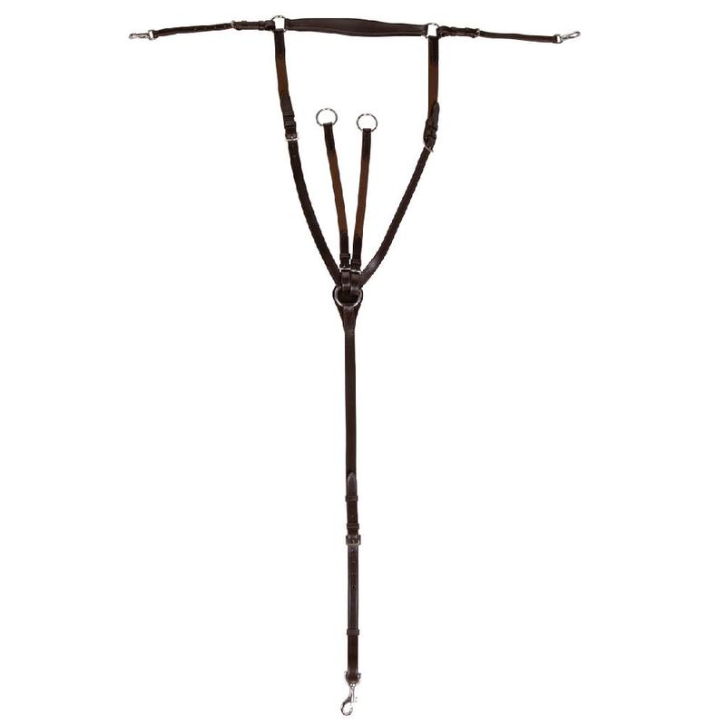 Napierśnik 5- punktowy krzyżowy firmy Parkur. Wykonany z wysokiej jakości skóry bydlęcej. Podszyty bukatem. Produkt polski.