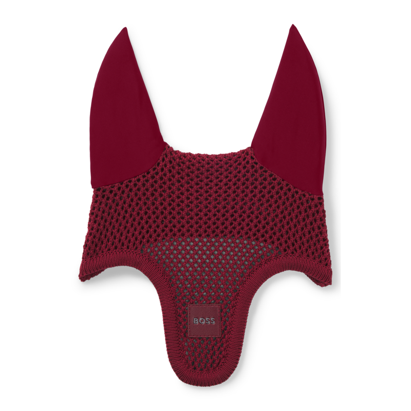 Nauszniki firmy Boss Equestrian. Ozdobione dwoma sznureczkami w kontrastowych kolorach oraz nazwą producenta. Uszy wykonane z oddychającego, szybkoschnącego materiału.