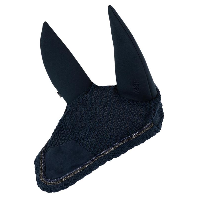 Nauszniki firmy BR. Połączenie szydełkowanej przędzy bawełnianej z zamszową tkaniną. Uszy wykonane z miękkiego neoprenu, który tłumi hałas w tle. Ozdobione sznurkiem w kolorze ciemnego srebra.