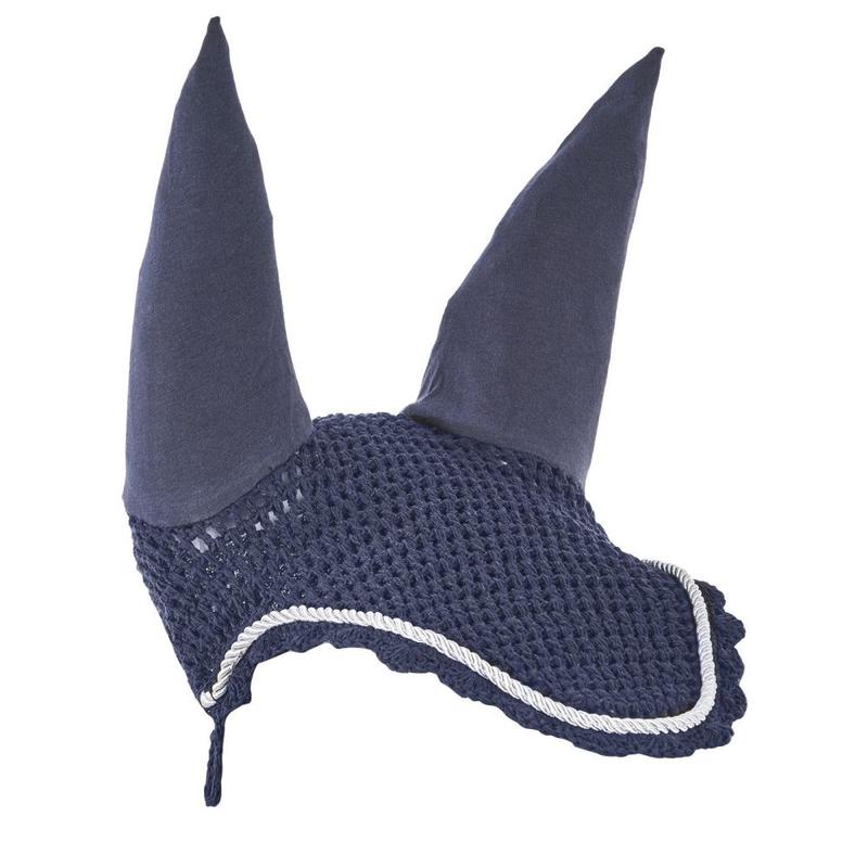 Szydełkowe nauszniki z kolekcji Eskadron z uszami wykonanymi z elastycznego materiału. Klasyczne, doskonałe dla każdego konia. Ozdobione delikatnym, srebrnym sznureczkiem. Świetnie chroni przed owadami.