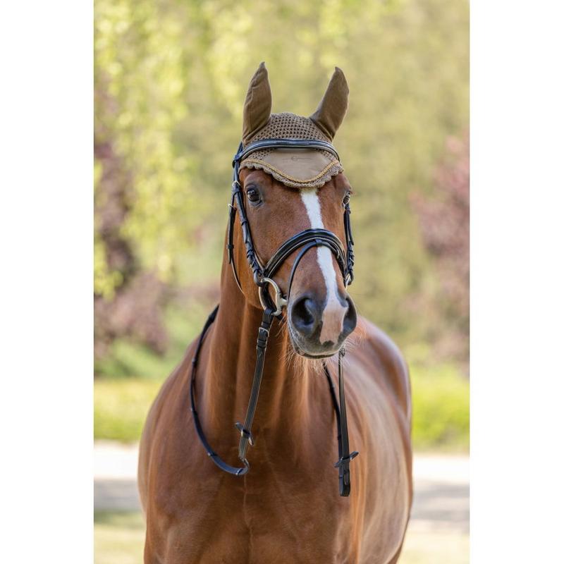 Nauszniki Horze B Vertigo LaurelStylowe nauszniki z ekskluzywnej kolekcji B Vertigo.Zabezpieczają konia przed muchami i tłumią hałas, dzięki czemu koń nie będzie zdekoncentrowany.Ręcznie tkane z delikatnej dzianiny.