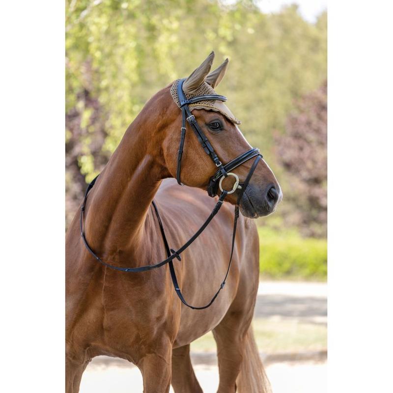 Nauszniki wyciczające B Vertigo. Ten model ma elastyczną część nauszną, która skutecznie tłumi hałas, dzięki czemu Twój koń będzie mógł się łatwiej skupić na pracy.