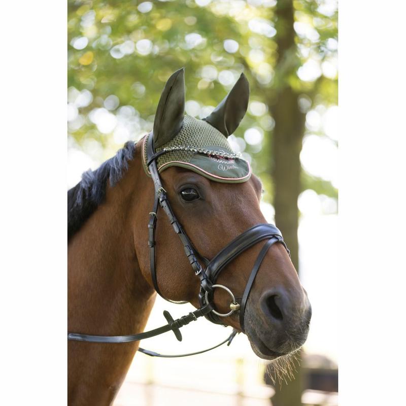 Nauszniki firmy HKM. Wykonane z wysokiej jakości materiału.Ozdobione eleganckim wzorem na froncie. Ręcznie szydełkowane.Nauszniki stanowią idealną ochronę konia przed owadami. Prać w temp. 30 stopni. 100% poliester