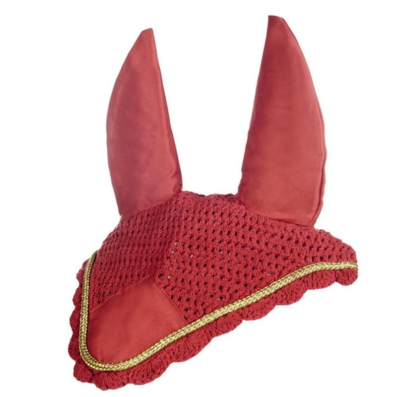 Nauszniki firmy HKM. Stosowane w celu ochrony konia przed owadami. Wykonywane ręcznie za pomocą szydełka.