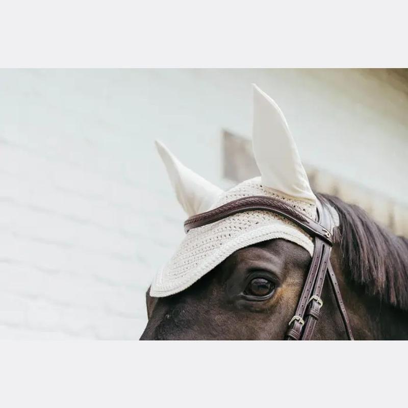 Chroni uszy konia przed muchami podczas jazdy.