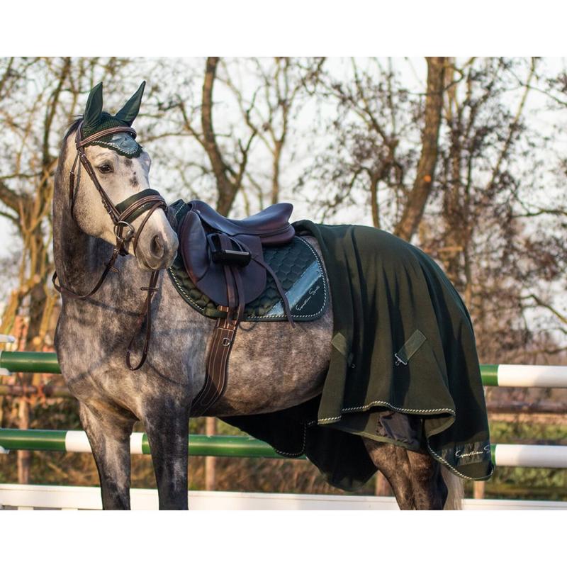 Nauszniki z najnowszej kolekcji Eskadron Heritage 2025/2026 w wyjątkowym odcieniu Cardamon. Wykonane z wysokiej jakości, szydełkowanej bawełny, gwarantującej doskonałą wentylację i komfort dla konia.Miękkie, elastyczne uszy z materiału technicznego skutecznie tłumią hałas i chronią przed owadami, zapewniając spokój oraz koncentrację podczas jazdy....