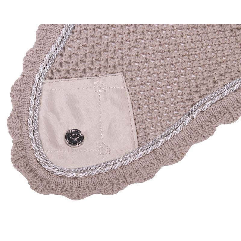 Uzupełnij swój komplet Havana tym eleganckim dodatkiem. Szydełkowane z uszami z elastanu, dzięki czemu są bardzo wygodna w noszeniu. Ozdobione sznurkiem w kolorze metalicznym oraz dwukolorowym sznurkiem ozdobnym. Pin „Q” dopełnia wygląd.