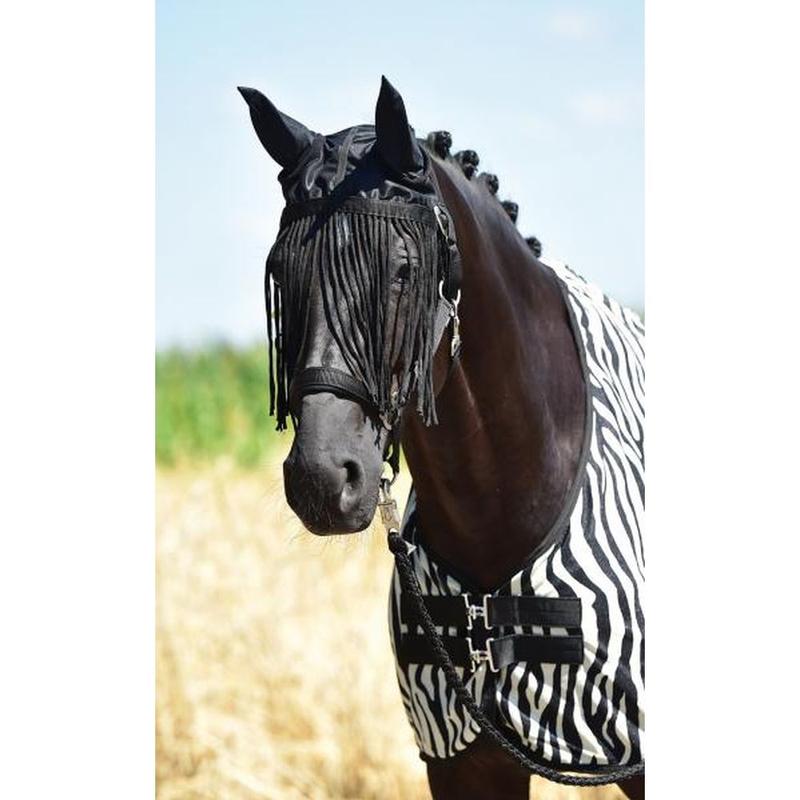 Nauszniki z długimi frędzlami firmy Busse. Chronią uszy i oczy przed owadami. Tkanina siatkowa o gęstym splocie. Podgardle zapinane na rzep. Brzegi wykończone miękkim sztucznym futerkiem. Materiał: 100% poliester.