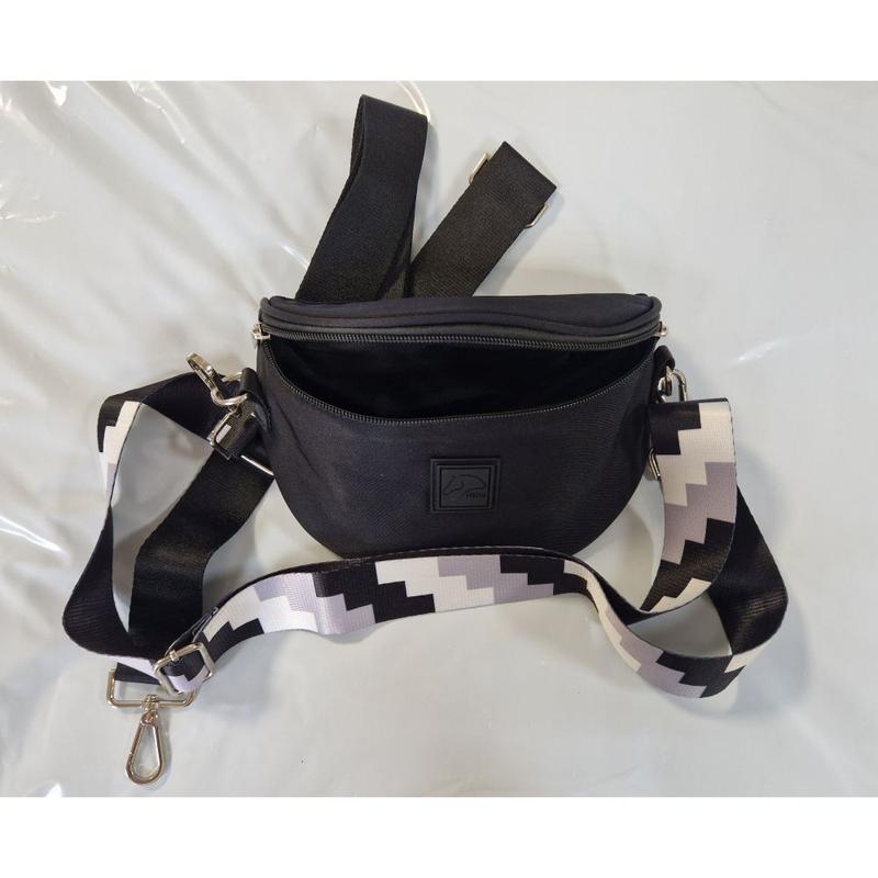 Nerka firmy HKM. Przednia i tylna kieszeń zapinana na zamek błyskawiczny. Wyposażona w dwa odpinane paski na ramię. Wysokość około 16 cm, długość około 23 cm.