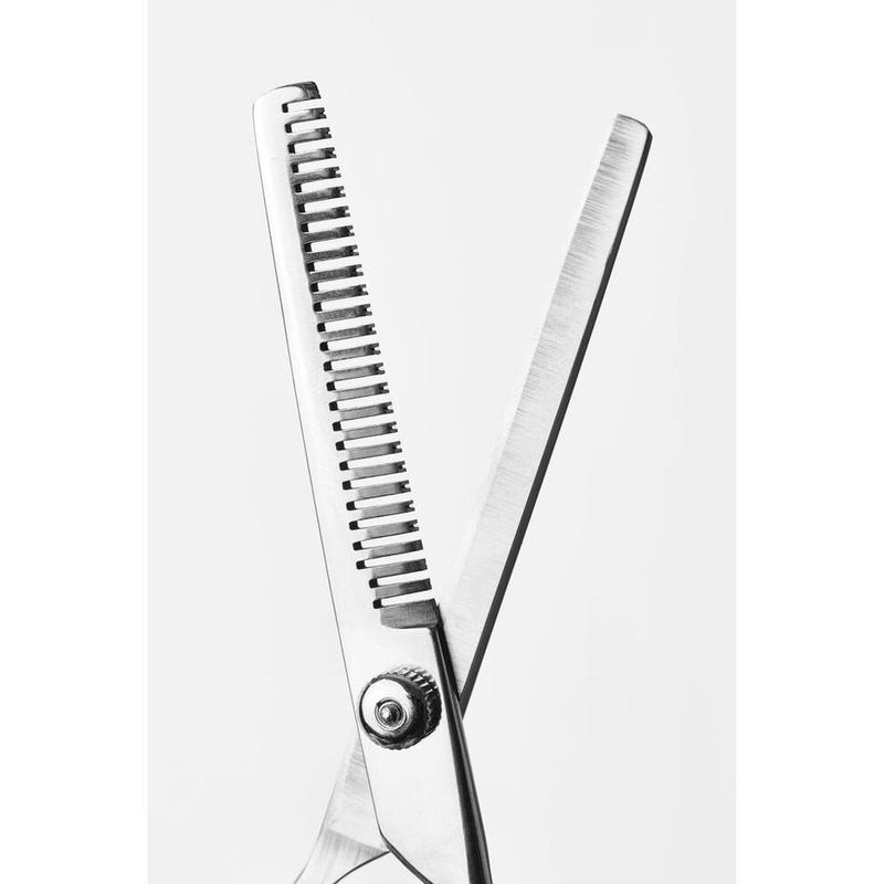 Nożyczki do trymowania grzywy firmy Horze. Niezbędne w cieniowaniu gęstej grzywy konia. Wykonane ze stali nierdzewnej, natomiast rękojeść z PCV.