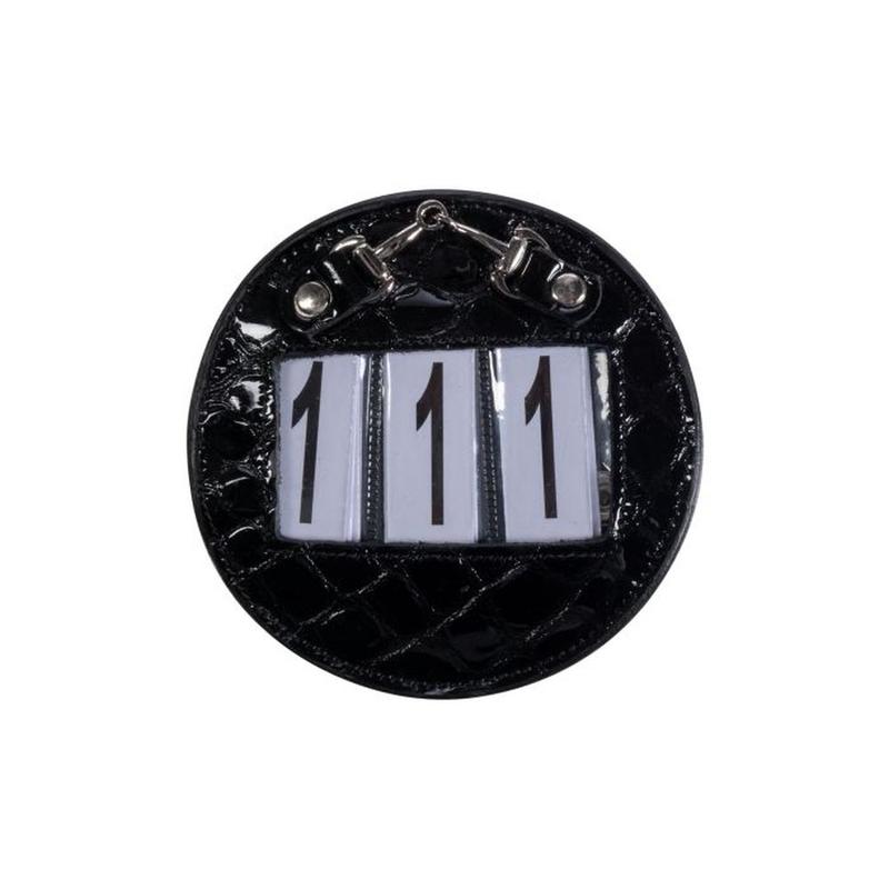 Numery startowe na ogłowie firmy Horze. Możliwości kombinacji trzycyfrowej, trzy zestawy cyfr od 0 do 9. Ozdobione kryształkami wokół krawędzi.