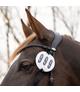 Numer startowy na ogłowie firmy HKM. Wykonane z wysokiej jakości skóry. Ozdobione małym metalowym wędzidłem. W zestawie jedna para.