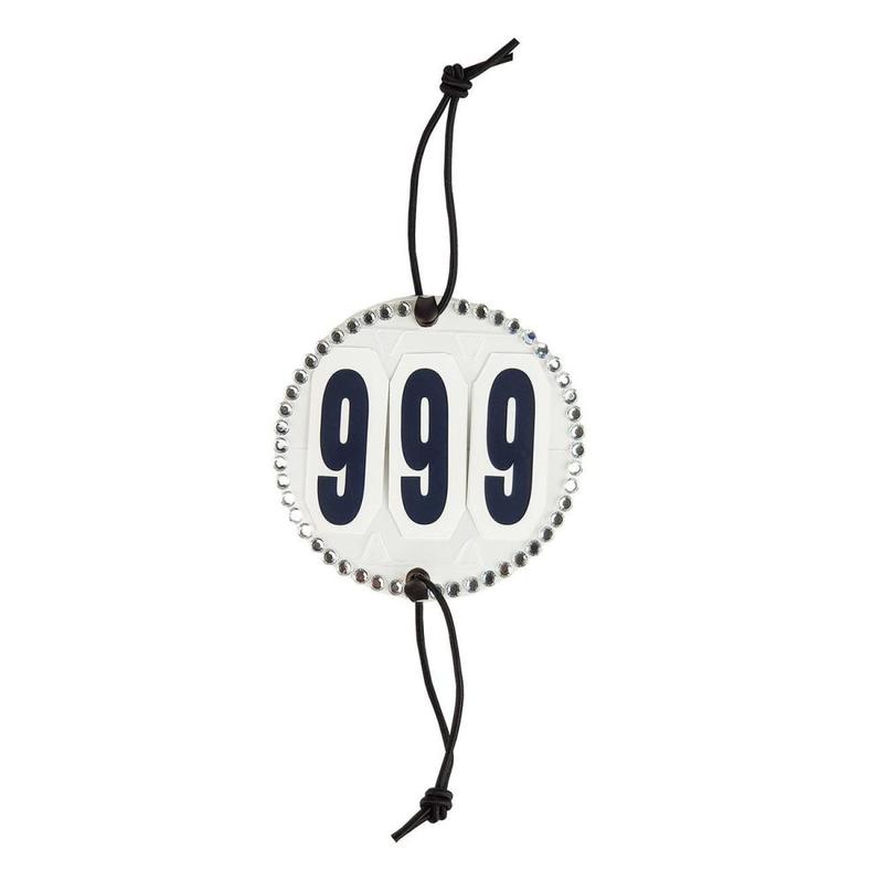 Numery startowe na ogłowie firmy Horze. Możliwości kombinacji trzycyfrowej, trzy zestawy cyfr od 0 do 9. Ozdobione kryształkami wokół krawędzi.