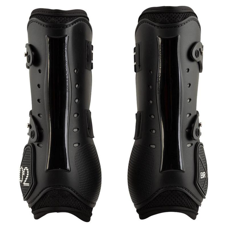 Ochraniacze Ultimo firmy BR zapinane na bolce. Wykonane z wysokiej jakości materiałów, przez co produkt jest lekki i wygodny, zapewnia optymalna ochronę i wsparcie dla ścięgien. Posiadają zapięcia na kołeczki, dlatego idealnie dopasowuje się do końskich nóg.