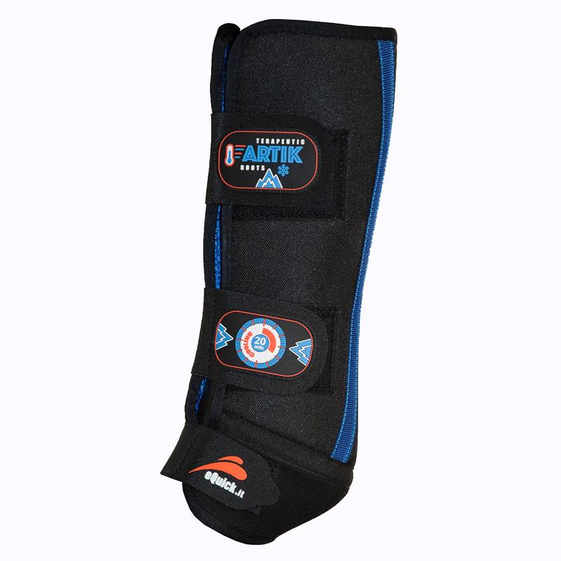 Ochraniacz chłodząco rozgrzewający firmy QHP. Rozgrzej lub ochłodź nogi konia w razie kontuzji lub po treningu. Ochraniacz zawiera dwa wkłady, które mogą być ogrzane lub schłodzone odpowiednio w kuchence mikrofalowej lub zamrażarce. Łatwe mocowanie dzięki rzepom. Z podszewką, aby równomiernie rozprowadzić podane zimno lub ciepło.