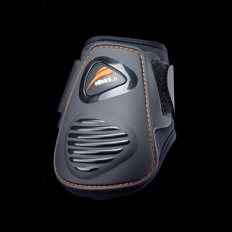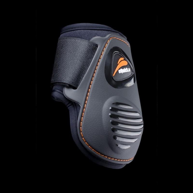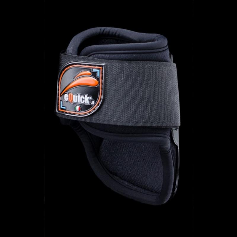 Ochraniacze tylne eLight firmy eQuick. Wykonane z bardzo mocnego materiału TPU, skóropodobnego. Wnętrze wyściełane miękkim neoprenem, wykończone Lycyrą, która zapobiega powstawaniu ran. Wyposażone w elastyczne paski na rzep, zapewniające idealne dopasowanie do nóg konia. Posiadają anatomiczny kształt, który chroni ścięgna przed urazami. Trwałe, niezawodne oraz wodoodporne. Są bardzo lekkie przez co zapewniają najwyższy komfort użytkowania.