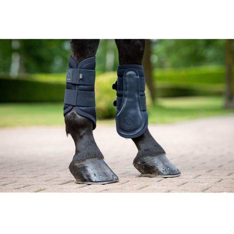 Ochraniacze wyposażone są w wielowarstwową siatkę w strefie uderzenia, która wspiera amortyzację oraz wentylację. Dodatkowa wkładka PU zwiększa poziom ochrony, skutecznie zabezpieczając nogi konia podczas treningu i startów w zawodach.