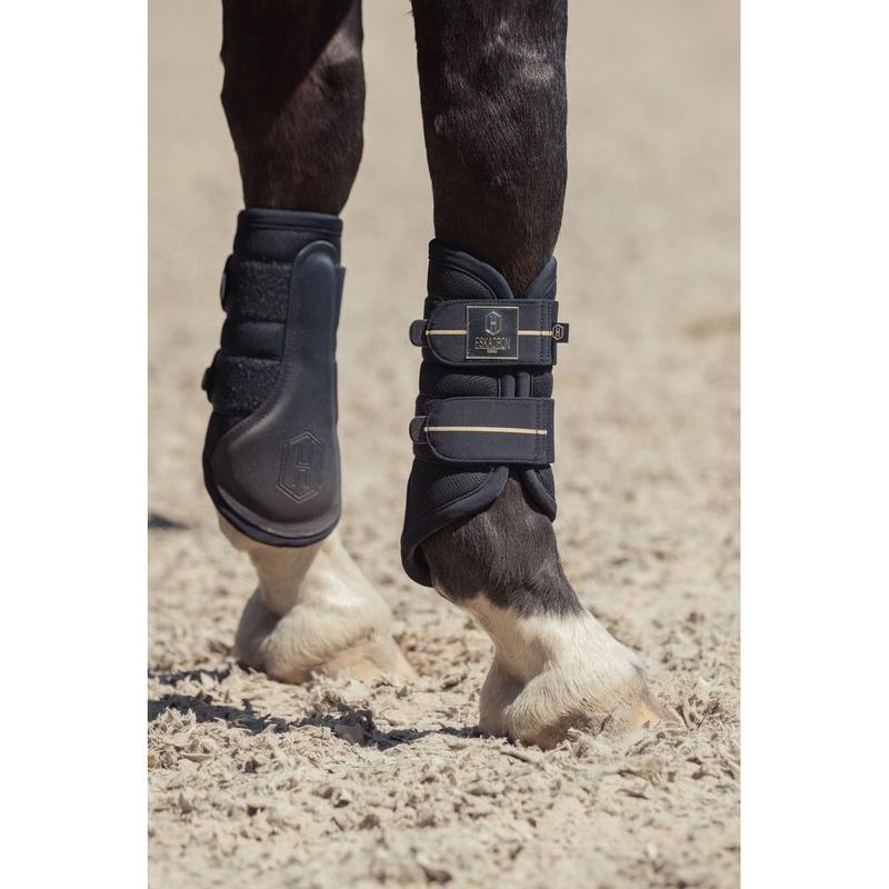 Ochraniacze z kolekcji Eskadron Heritage 2025/2026. Wykonana z wielowarstwowej siateczki z materiału typu softshell dzięki czemu zapewniają dobrą cyrkulację powietrza. Od wewnętrznej strony nogi obszyte materiałem typu ekoskóra z wytłoczeniami. Praktyczne rzepy z emblematami zapewniają możliwość optymalnego dopasowania do nogi. Łatwe w czyszczeniu.