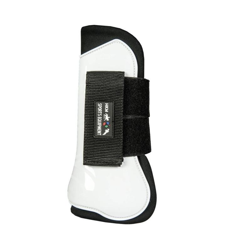 Komplet ochraniaczy firmy HKM.Wykonane z odpornego materialu pochłaniającego wstrzasy. Spinane na solidne rzepy ozdobione logiem firmy. Od wewnatrz podszyte miekkim neoprenem. Nie odksztalcaja sie, dzieki czemu nie powoduja obtarc. Nadają się do