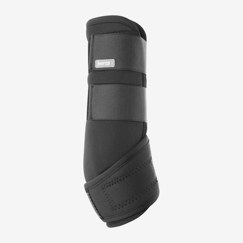 Ochraniacze stajenne, tylne firmy Horze. Wykonane w100% z neoprenu, podszewka 100% poliester. Dzięki swojej stabilności pomagają koniowi odzyskać komfort po treningu. Znakomicie formują się i dopasowują się do nóg. Łatwe w zakładaniu, zapinane na solidne rzepy. Wykonane z oddychającego, amortyzującego materiału. Wnętrze miękko wyściełane, odpinane.