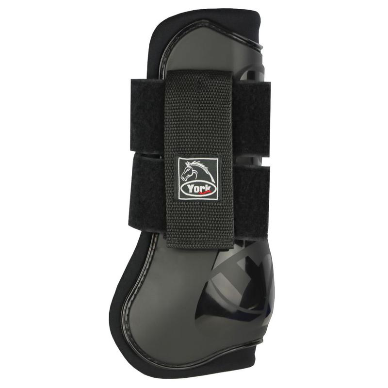 Ochraniacze na tył nogi konia firmy York. Wytrzymała skorupa i miękka wyściółka neoprenowa zapobiega obtarciom i kontuzjom.Praktyczne, elastyczne oraz mocne zapięcia na rzep.Łatwe do utrzymania w czystości.
