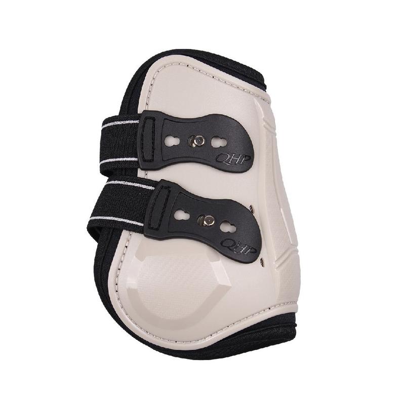 Ochraniacze przednie firmy QHP. Wykonane z mocnego plastikowego tworzywa z ozdobnymi paskami. W wewnątrz podszyty miękkim neoprenem. Zapinane na kołki.Zapewniają doskonałą ochronę przednich nóg konia przed uderzeniami oraz wstrząsami.