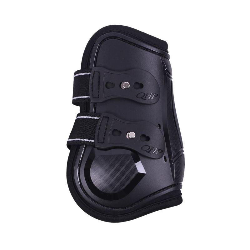 Ochraniacze przednie firmy QHP. Wykonane z mocnego plastikowego tworzywa z ozdobnymi paskami. W wewnątrz podszyty miękkim neoprenem. Zapinane na kołki.Zapewniają doskonałą ochronę przednich nóg konia przed uderzeniami oraz wstrząsami.