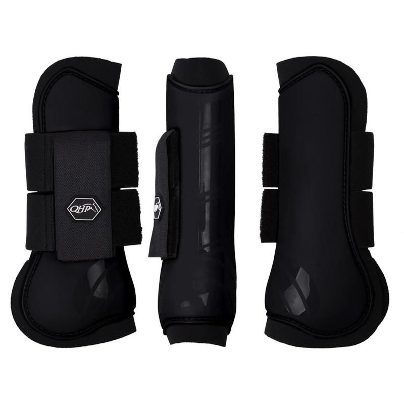 Ochraniacze przednie firmy QHP. Wykonane z mocnego plastikowego tworzywa z ozdobnymi, błyszczącymi paskami. W wewnątrz podszyty miękkim neoprenem. Zapinane na mocne rzepy z logo firmy. Zapewniają doskonałą ochronę przednich nóg konia przed uderzeniami oraz wstrząsami. Wysokość z tyłu: Shetty: 17 cm. Pony: 20 cm. Full: 24 cm.