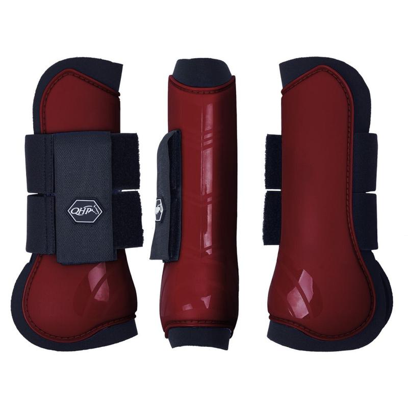 Ochraniacze przednie firmy QHP. Wykonane z mocnego plastikowego tworzywa z ozdobnymi, błyszczącymi paskami. W wewnątrz podszyty miękkim neoprenem. Zapinane na mocne rzepy z logo firmy. Zapewniają doskonałą ochronę przednich nóg konia przed uderzeniami oraz wstrząsami. Wysokość z tyłu: Shetty: 17 cm. Pony: 20 cm. Full: 24 cm.