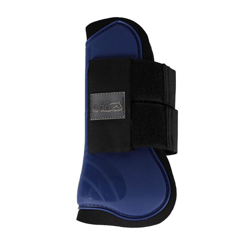 Ochraniacze przednie firmy QHP. Wykonane z mocnego plastikowego tworzywa z ozdobnymi paskami. W wewnątrz podszyty miękkim neoprenem. Zapinane na kołki.Zapewniają doskonałą ochronę przednich nóg konia przed uderzeniami oraz wstrząsami.