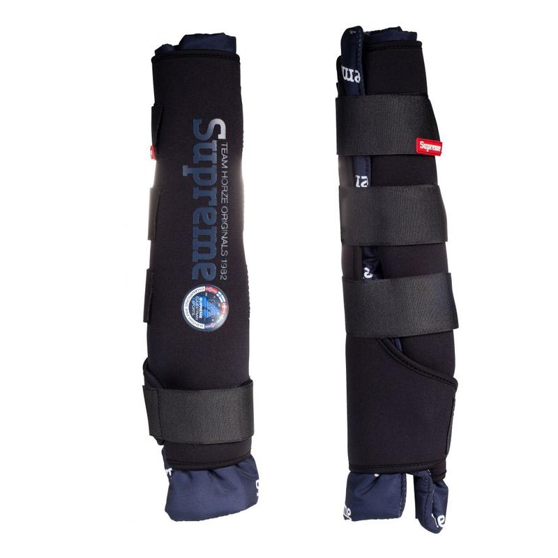 Ochraniacze stajenne, przednie firmy Horze. Wykonane w 100% z neoprenu, podszewka 100% poliester. Dzięki swojej stabilności pomagają koniowi odzyskać komfort po treningu. Znakomicie formują się i dopasowują się do nóg. Łatwe w zakładaniu, zapinane na szerokie rzepy. Wykonane z oddychającego, amortyzującego materiału. Wnętrze miękko wyściełane, odpinane.