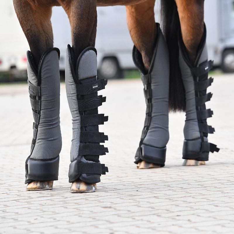 Ochraniacze transportowe Premium firmy HKM. Wykonane z oddychającego i wytrzymałego materiału wysokiej jakości. Posiadają wypełnienie z pianki. Wyposażone w solidne, szerokie rzepy ok. 10cm. Posiadają ergonomiczny krój, dzięki którym idealnie dopasowują s