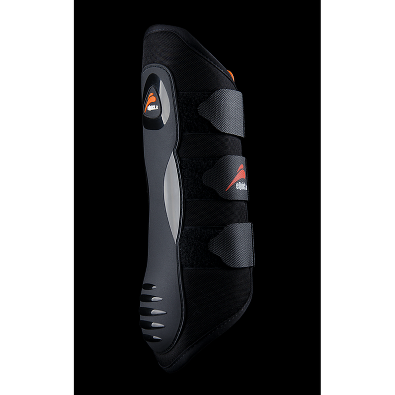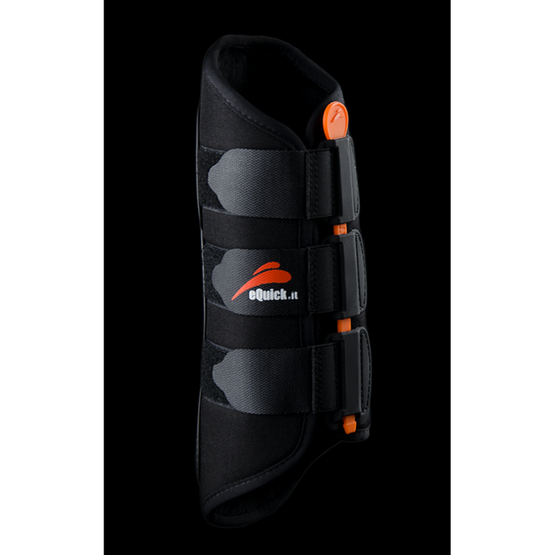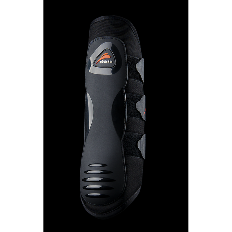 Ochraniacze przednie eShock FluidGel firmy eQuick. Wykonane z bardzo mocnego materiału TPU. Wnętrze wyściełane miękkim neoprenem, wykończone Lycyrą, która zapobiega powstawaniu ran. Wyposażone w elastyczne paski zapinane na kołki, zapewniające łatwą regulację. Posiadają anatomiczny kształt, który chroni ścięgna przed urazami oraz w system eFluidgel....