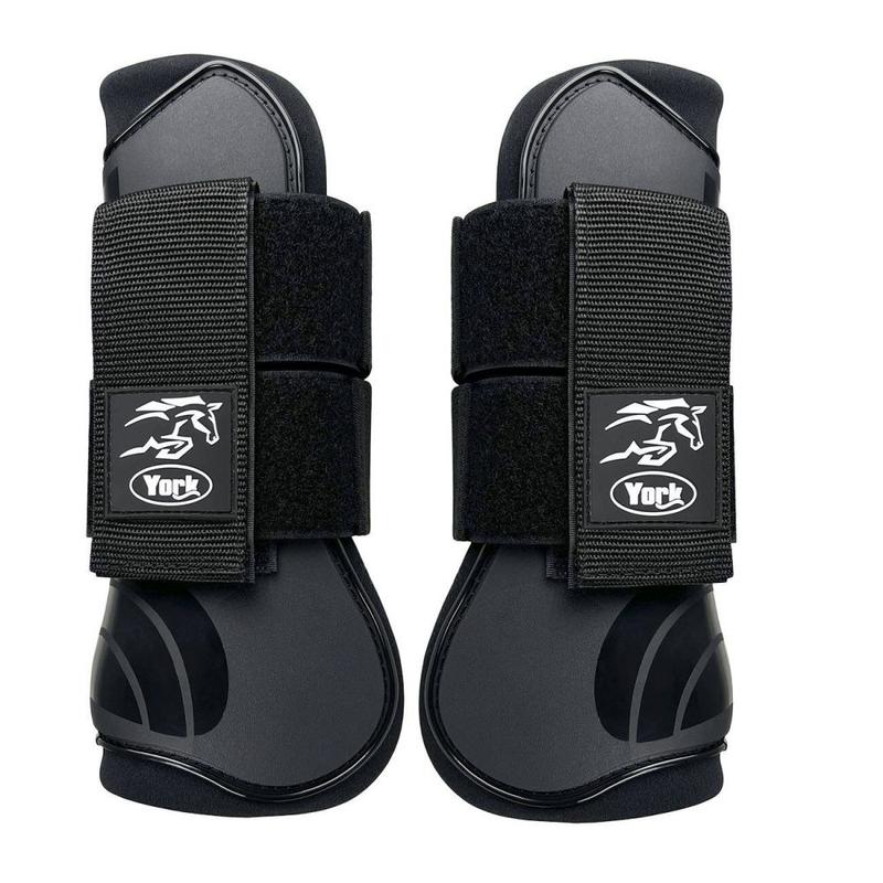 Ochraniacze na tył nogi konia firmy York. Wytrzymała skorupa i miękka wyściółka neoprenowa zapobiega obtarciom i kontuzjom.Praktyczne, elastyczne oraz mocne zapięcia na rzep.Łatwe do utrzymania w czystości.